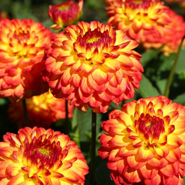 Георгина шаровидного сорта Айкун (Icoon) представляет собой среднерослое растение с яркими и выразительными соцветиями. Этот сорт был выведен в 2008 году и быстро завоевал популярность среди цветоводов благодаря своей уникальной окраске. Соцветия Айкун имеют четкую форму и широкие лепестки, которые образуют идеальный шар. Желтые бутоны плавно переходят в красный цвет на кончиках лепестков, создавая эффектный контраст.