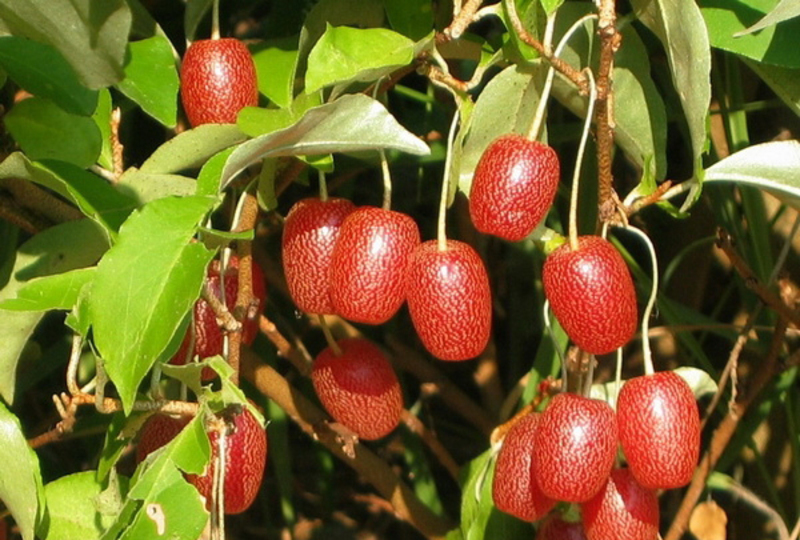 Плоды гуми Южный имеют цилиндрическую форму и крупный размер, в среднем весом около 2,3 грамма. Кожица ягод красная и нежная, а сами плоды сочные, сладкие с приятной терпкостью, что было оценено дегустаторами на 5 баллов. Это зимостойкое растение со средней урожайностью и умеренной устойчивостью к грибковым заболеваниям и вредителям.