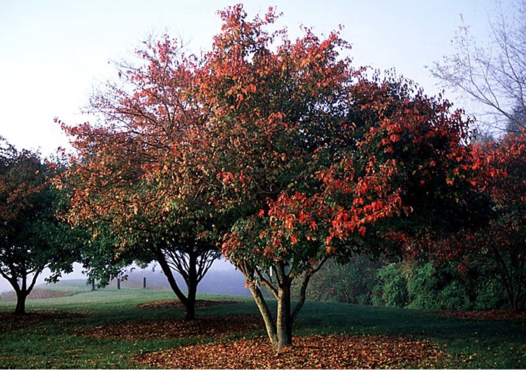 3. Яркая осенняя окраска листьев, придающая саду особую привлекательность.