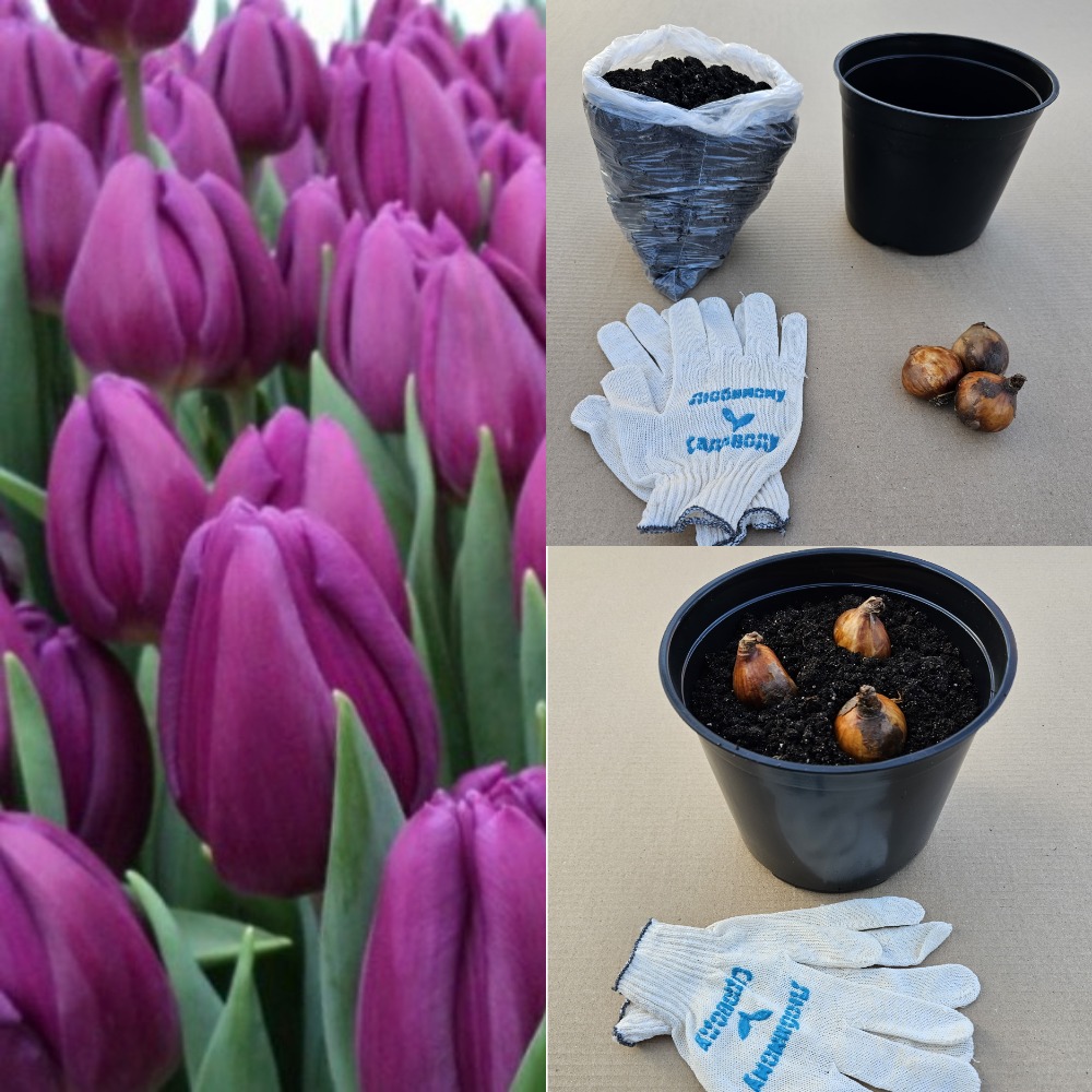 Комплект для выгонки 3 луковиц - Тюльпан Пурпл Леди
